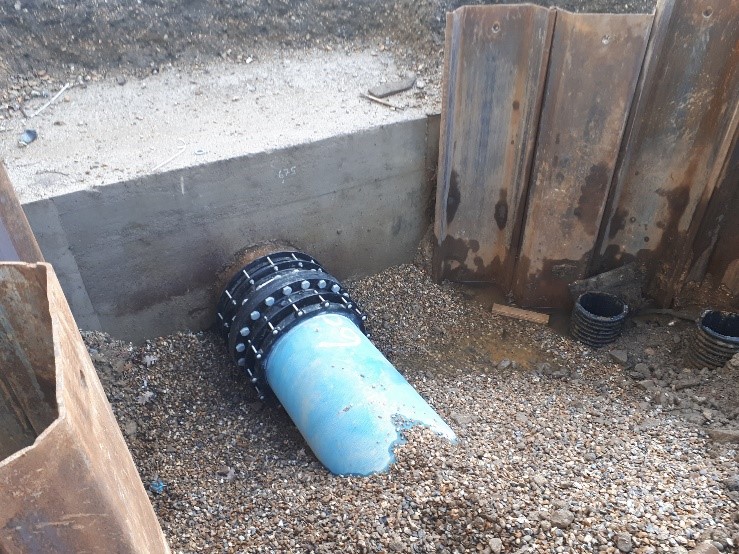 In order for repairs to begin, RK Air had to respond fast to install and commission the Northern Main at the Surge Vessel such that the fire main supply could be redirected through it. This involved laying approximately 15 metres of 600Dn push-fit pipe and completing the tie-ins at both ends. All in next-to-no-time.
